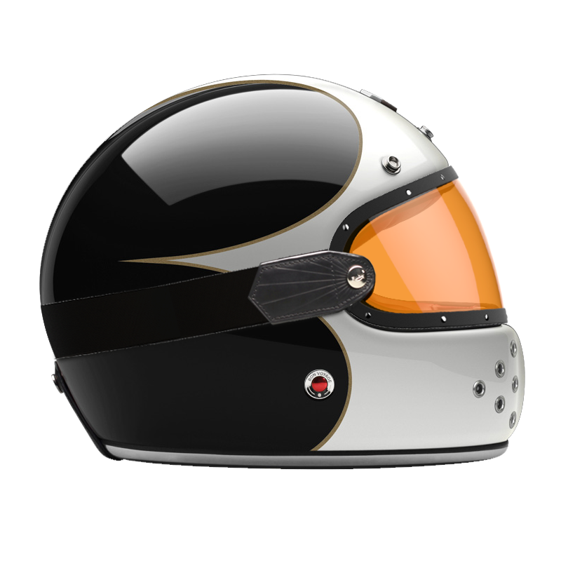 We also offer a dedicated range of external visors in clear, light smoke, dark smoke and orange, trimmed with leather and held in place by a rubber strap that follows the curve of the shell.