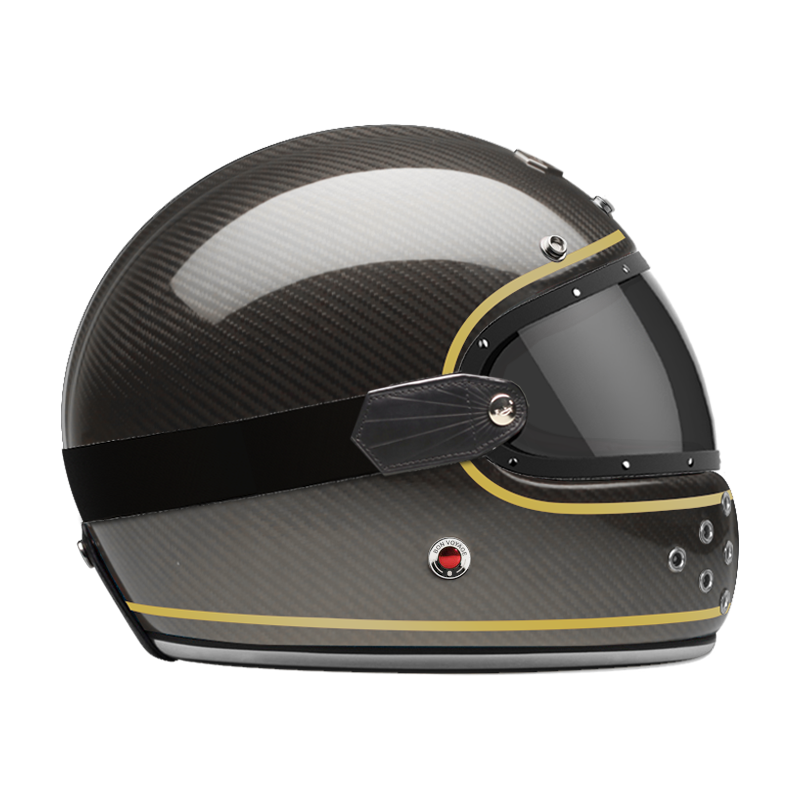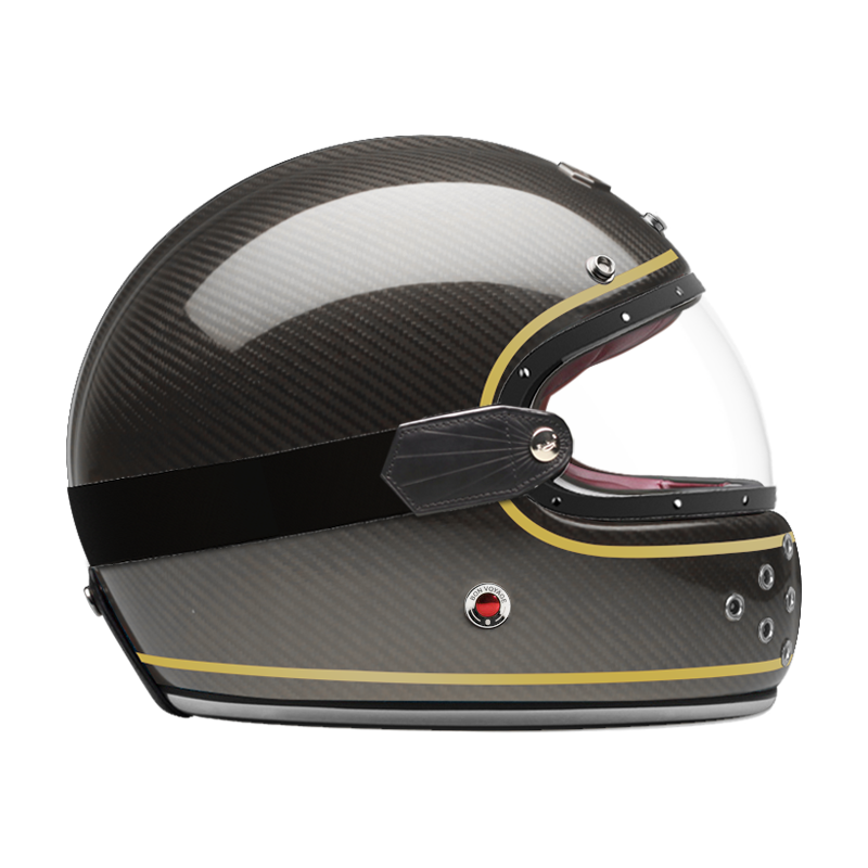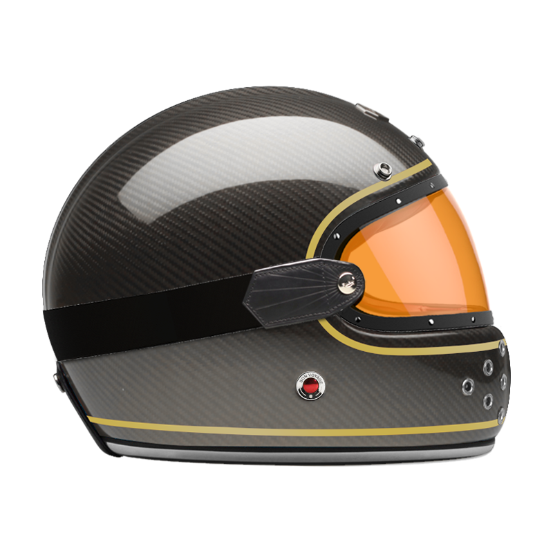 We also offer a dedicated range of external visors in clear, light smoke, dark smoke and orange, trimmed with leather and held in place by a rubber strap that follows the curve of the shell.