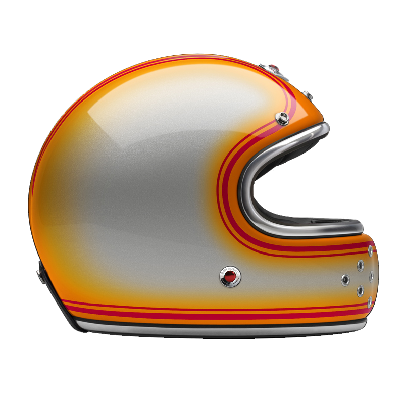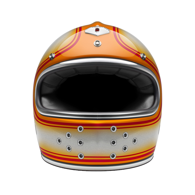 - Chrome, black leather or rubber trim, that reminds of old luxury cars, outlines the helmet