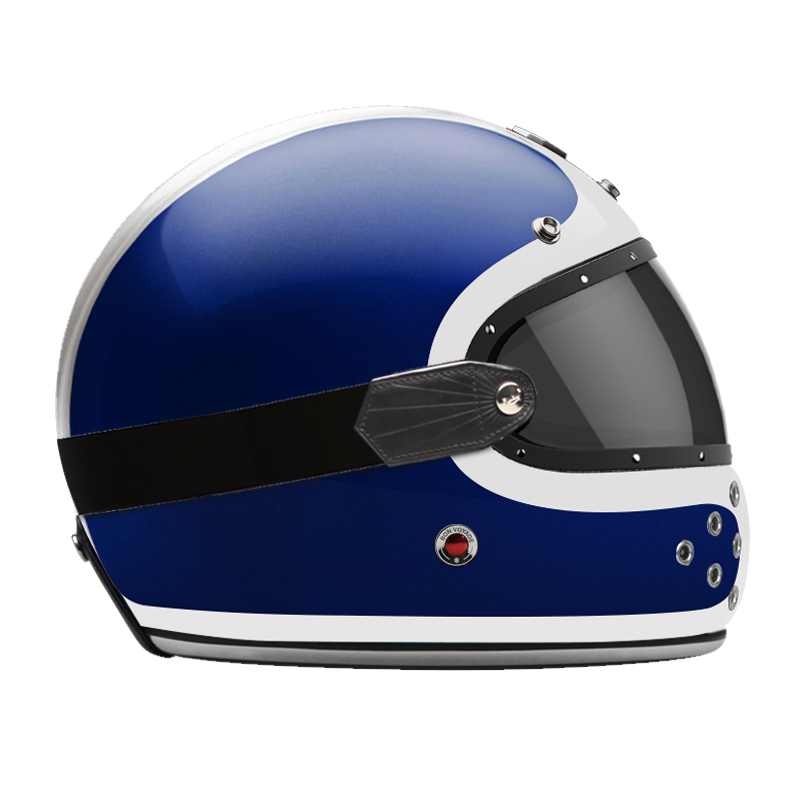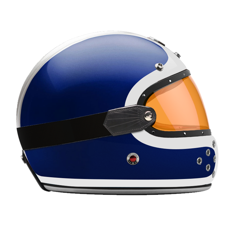 We also offer a dedicated range of external visors in clear, light smoke, dark smoke and orange, trimmed with leather and held in place by a rubber strap that follows the curve of the shell.