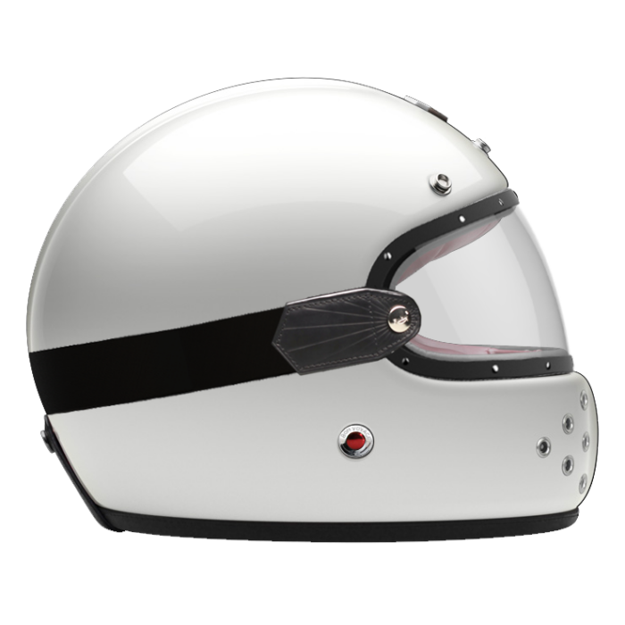 The Full face helmet light VisorĀ lets you ride comfortably also on higher speeds. It turns the Full face helmet into a fully closed helmet. The visor is framed by leather and a chrome or alternatively a gunmetal finish. The elastic rubber strap with special anti-slide strips and attachment to the loop on the back of the helmet ensures safe, firm fit.