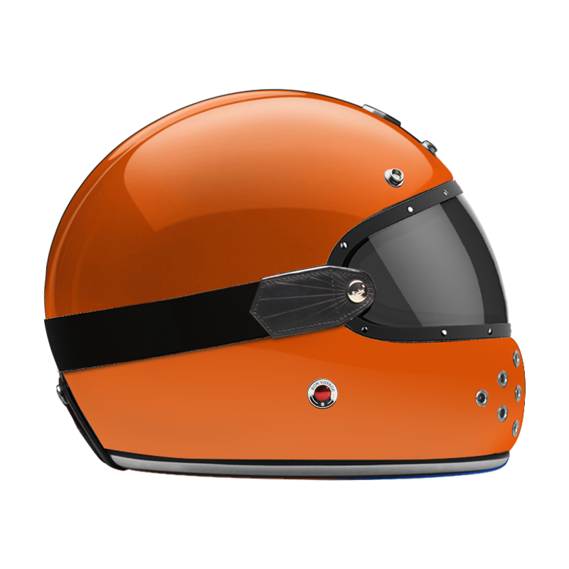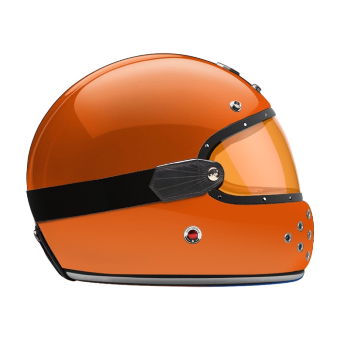 We also offer a dedicated range of external visors in clear, light smoke, dark smoke and orange, trimmed with leather and held in place by a rubber strap that follows the curve of the shell.