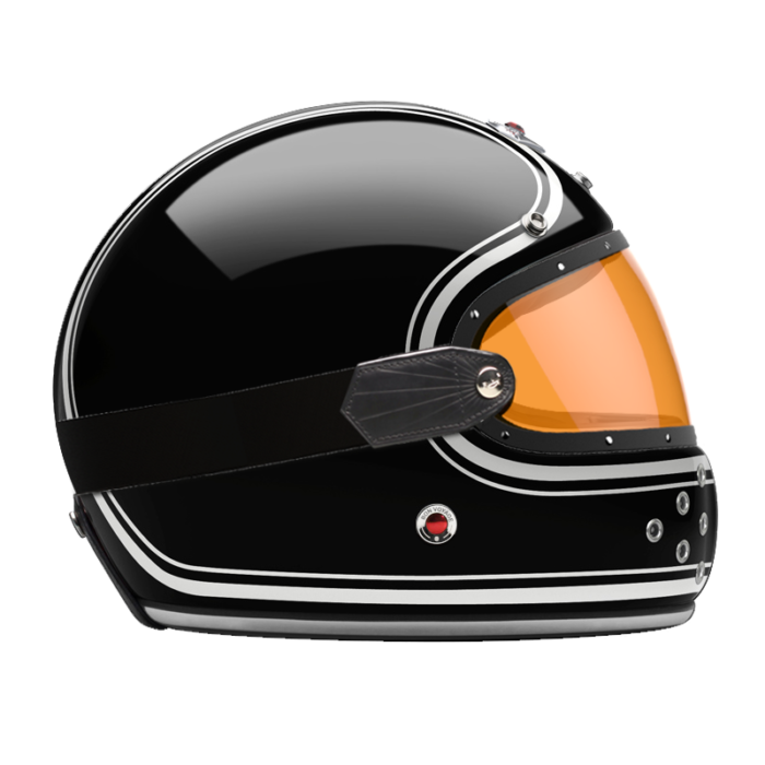 We also offer a dedicated range of external visors in clear, light smoke, dark smoke and orange, trimmed with leather and held in place by a rubber strap that follows the curve of the shell.