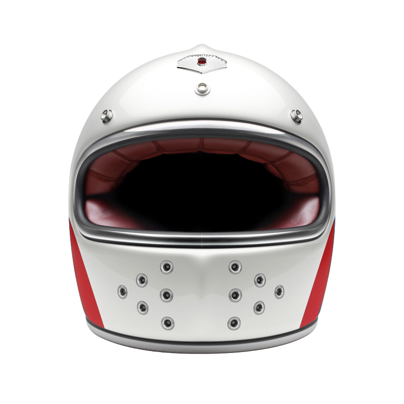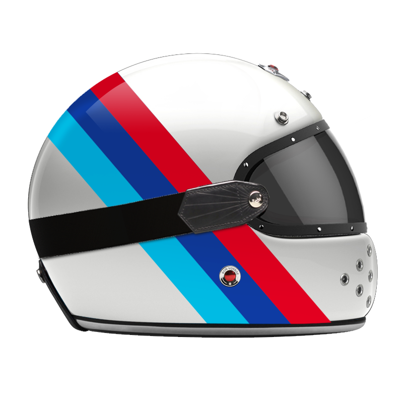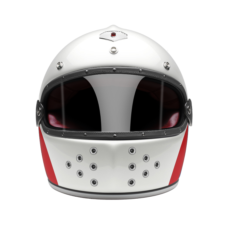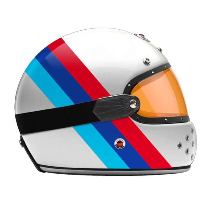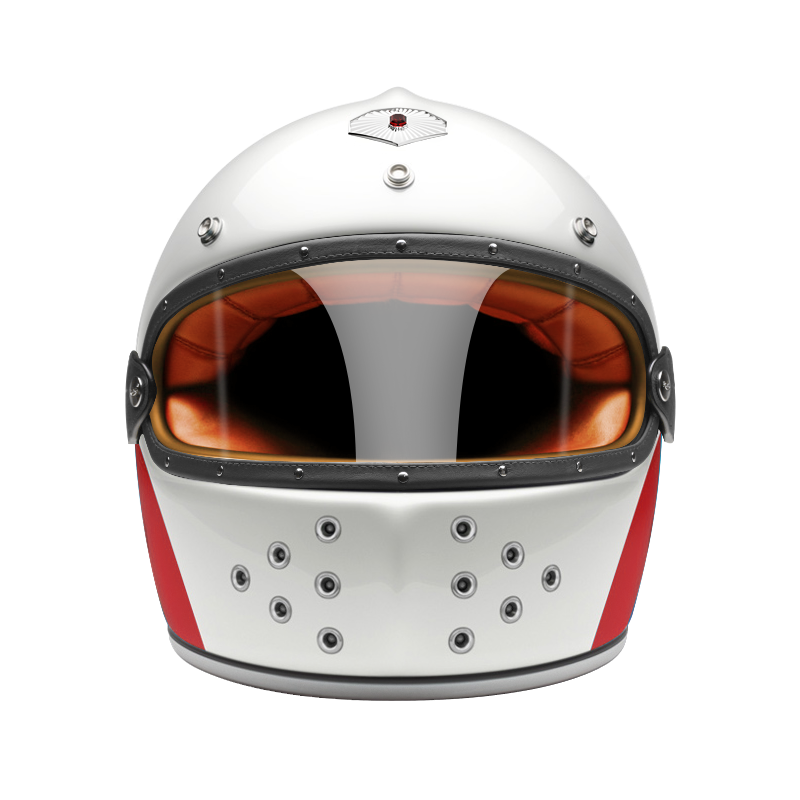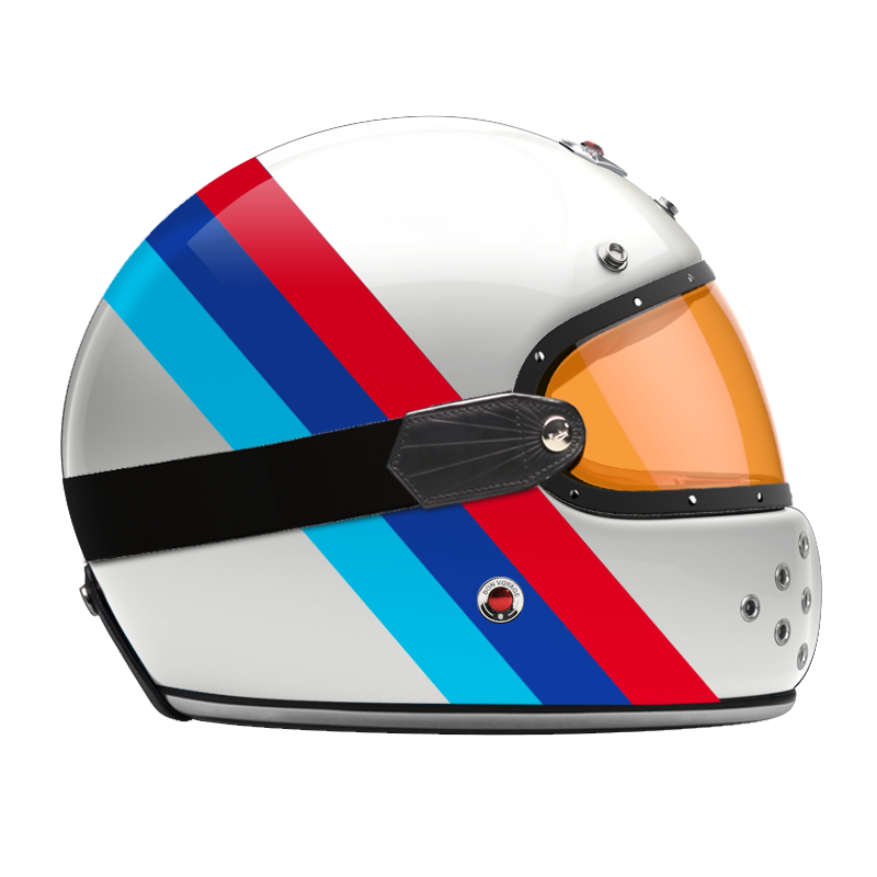 We also offer a dedicated range of external visors in clear, light smoke, dark smoke and orange, trimmed with leather and held in place by a rubber strap that follows the curve of the shell.
