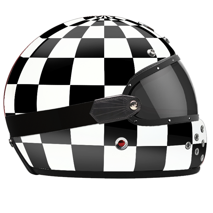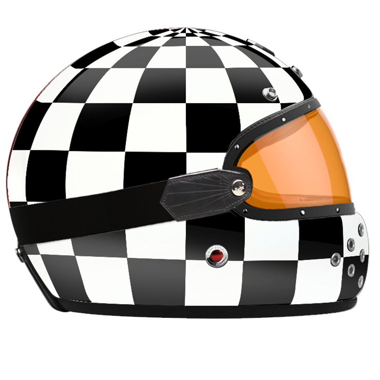 We also offer a dedicated range of external visors in clear, light smoke, dark smoke and orange, trimmed with leather and held in place by a rubber strap that follows the curve of the shell.
