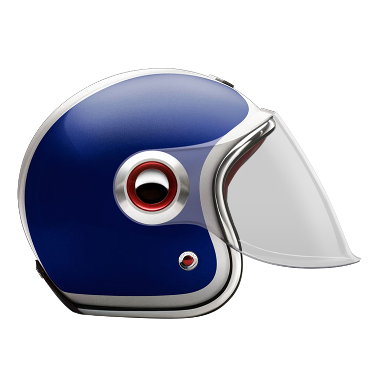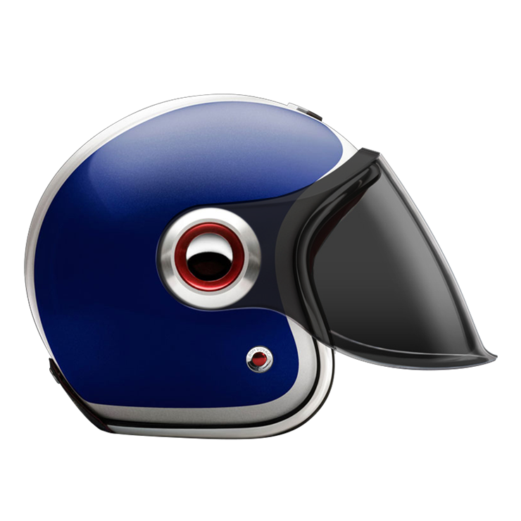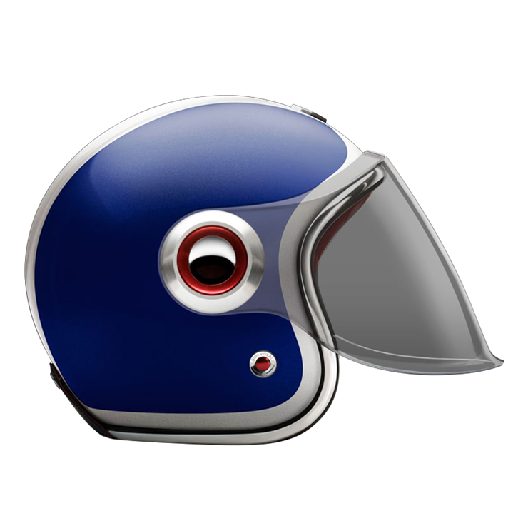 The large, integrated screen gives the helmet a subtle retro-futuristic character, echoing 1960s robots and science-fiction heroes, while remaining compact on the head. Each helmet combines a vintage-inspired silhouette with modern materials and current safety standards.