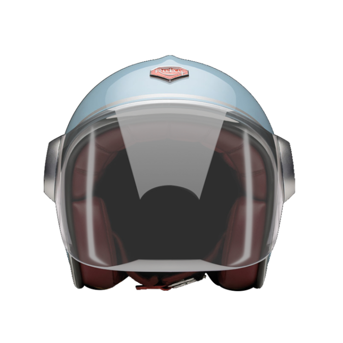 The RUBY Jet helmet is made to order and finished by hand. It shares the same compact shell, clean lines and leather interior as our open face, and adds a full-length articulated visor for extra coverage.