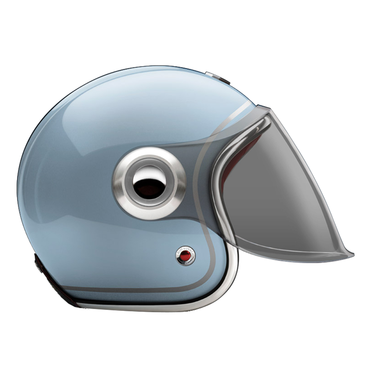 The large, integrated screen gives the helmet a subtle retro-futuristic character, echoing 1960s robots and science-fiction heroes, while remaining compact on the head. Each helmet combines a vintage-inspired silhouette with modern materials and current safety standards.