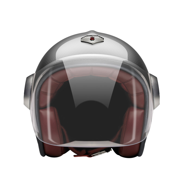 The RUBY Jet helmet is made to order and finished by hand. It shares the same compact shell, clean lines and leather interior as our open face, and adds a full-length articulated visor for extra coverage.