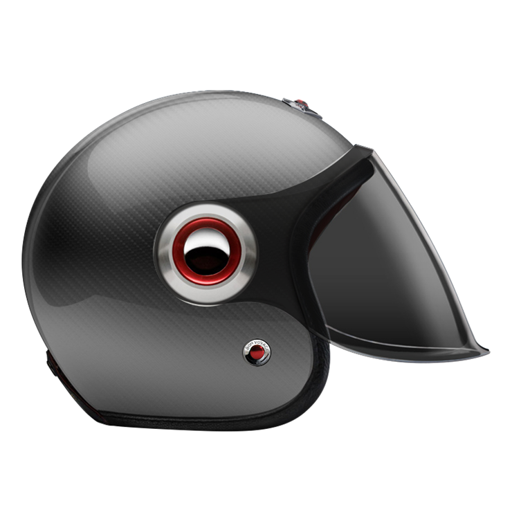 The large, integrated screen gives the helmet a subtle retro-futuristic character, echoing 1960s robots and science-fiction heroes, while remaining compact on the head. Each helmet combines a vintage-inspired silhouette with modern materials and current safety standards.