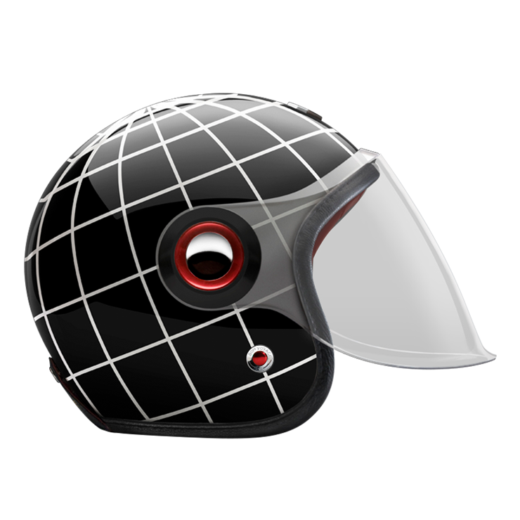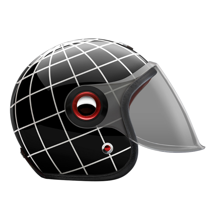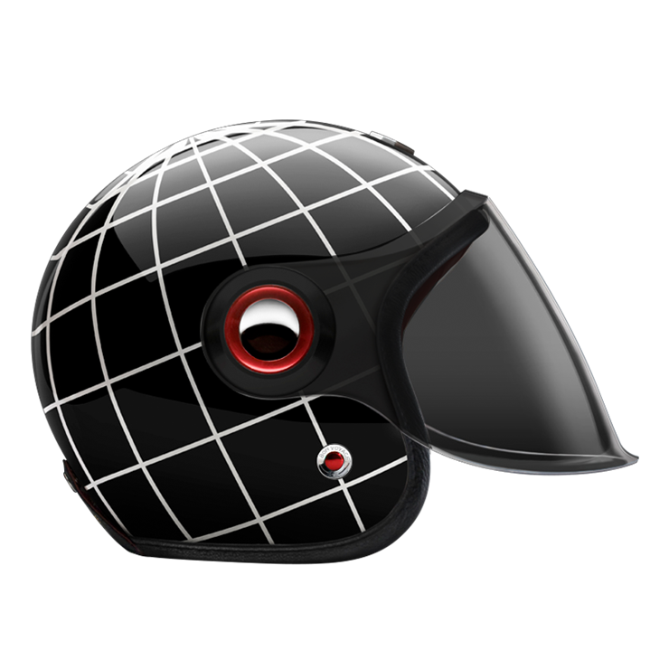 The large, integrated screen gives the helmet a subtle retro-futuristic character, echoing 1960s robots and science-fiction heroes, while remaining compact on the head. Each helmet combines a vintage-inspired silhouette with modern materials and current safety standards.