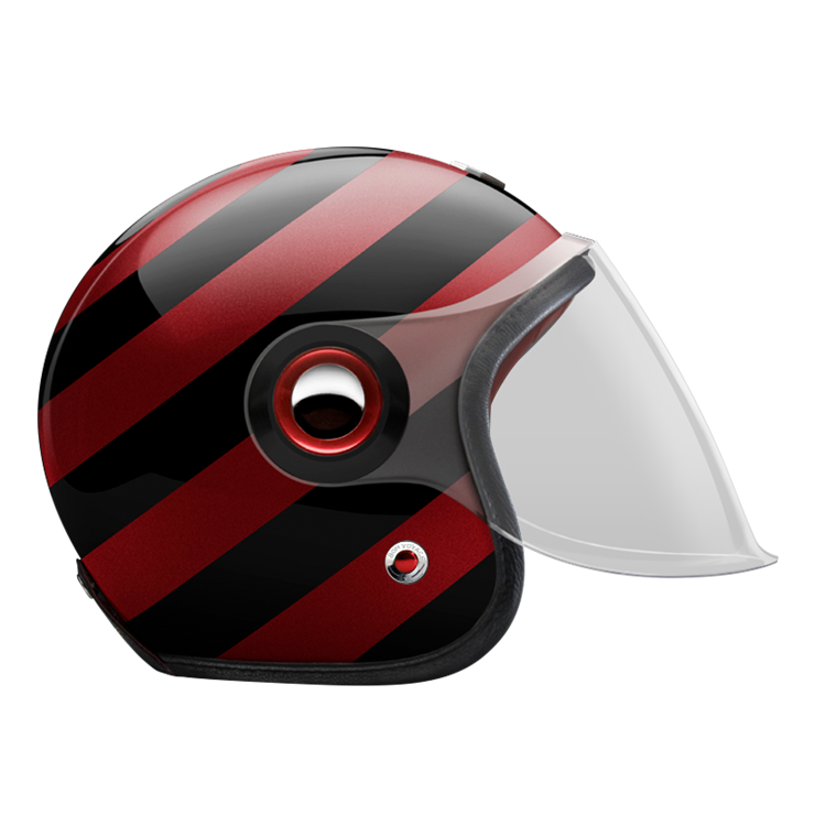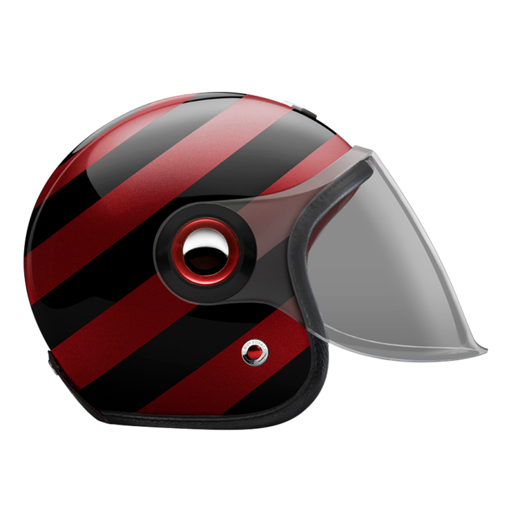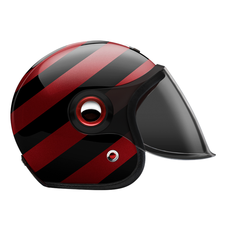 The large, integrated screen gives the helmet a subtle retro-futuristic character, echoing 1960s robots and science-fiction heroes, while remaining compact on the head. Each helmet combines a vintage-inspired silhouette with modern materials and current safety standards.