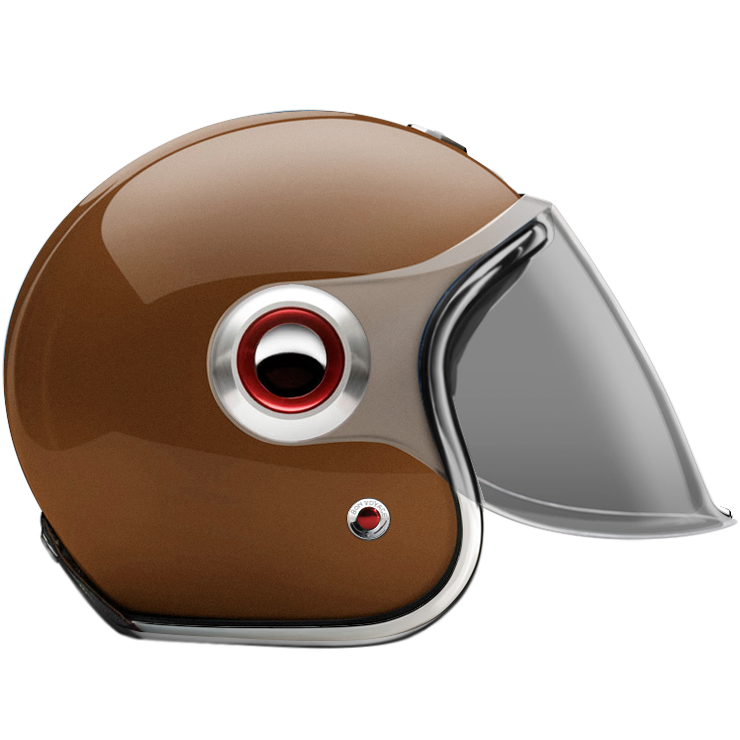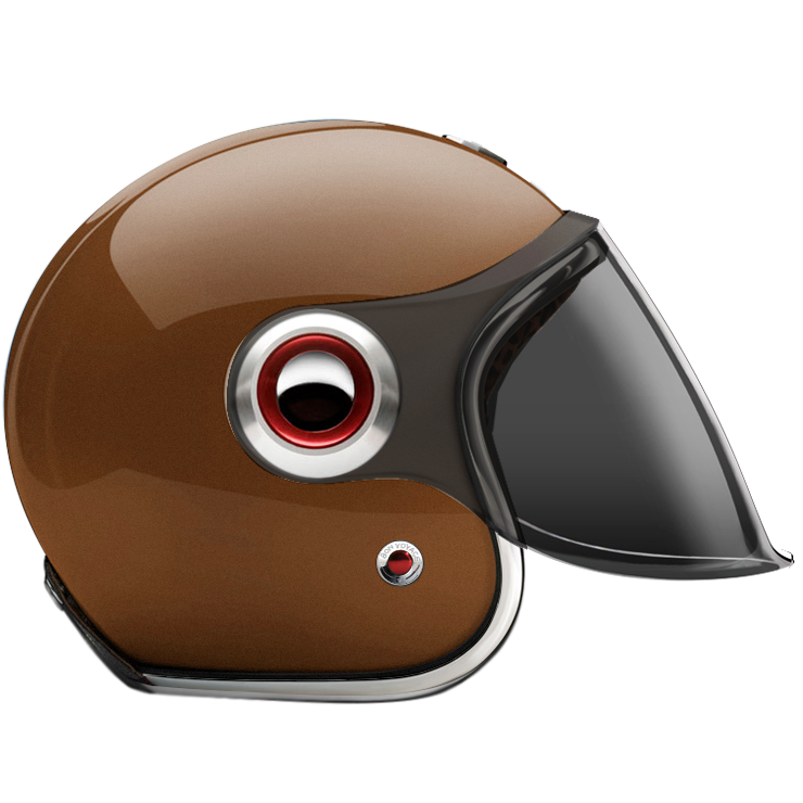 The Jet Helmet is equipped with an articulated screen/visor that can cover the complete face, it lets you ride with comfort in any weather condition. The Jet Helmet appears as rather retro-futuristic, reminding of robots and fiction heroes of the 1960s. Every Jet Helmet comes with three visors, a clear, a light smoke and a dark smoke, that are exchangeable within seconds, thanks to the quick release fastening pivots on the sides of the helmet. Of course, the Jet Helmet meets the same safety and quality demands as the Open Face Helmet. By the way, you can change the pivots on the sides, too. Go to accessories to see all of them.