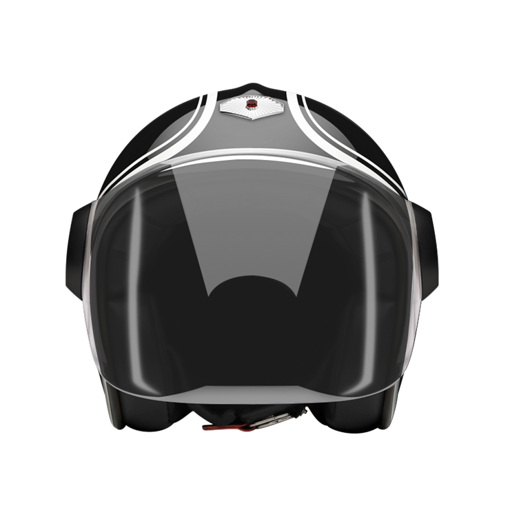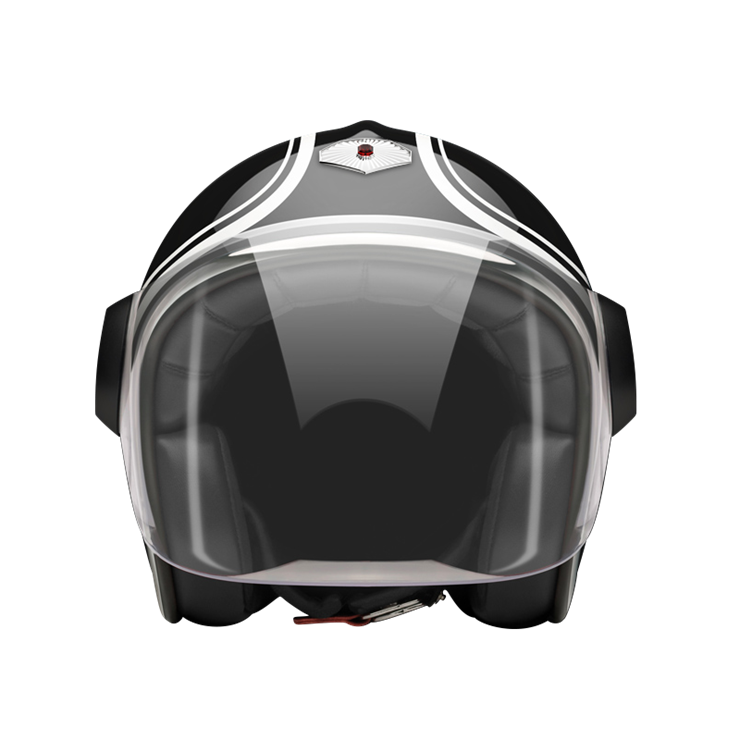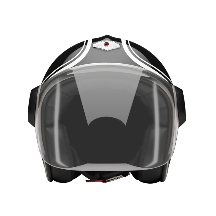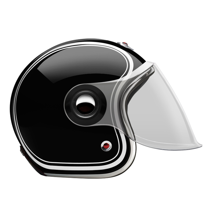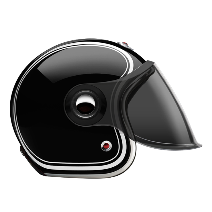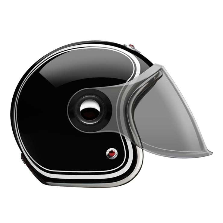 The Jet Helmet is equipped with an articulated screen/visor that can cover the complete face, it lets you ride with comfort in any weather condition. The Jet Helmet appears as rather retro-futuristic, reminding of robots and fiction heroes of the 1960s. Every Jet Helmet comes with three visors, a clear, a light smoke and a dark smoke, that are exchangeable within seconds, thanks to the quick release fastening pivots on the sides of the helmet. Of course, the Jet Helmet meets the same safety and quality demands as the Open Face Helmet. By the way, you can change the pivots on the sides, too. Go to accessories to see all of them.