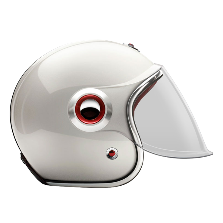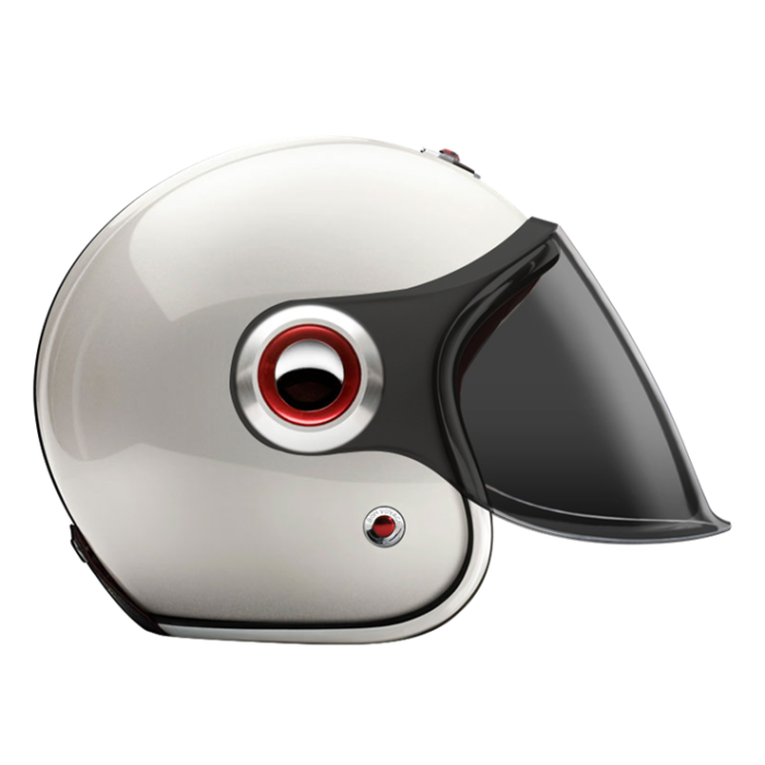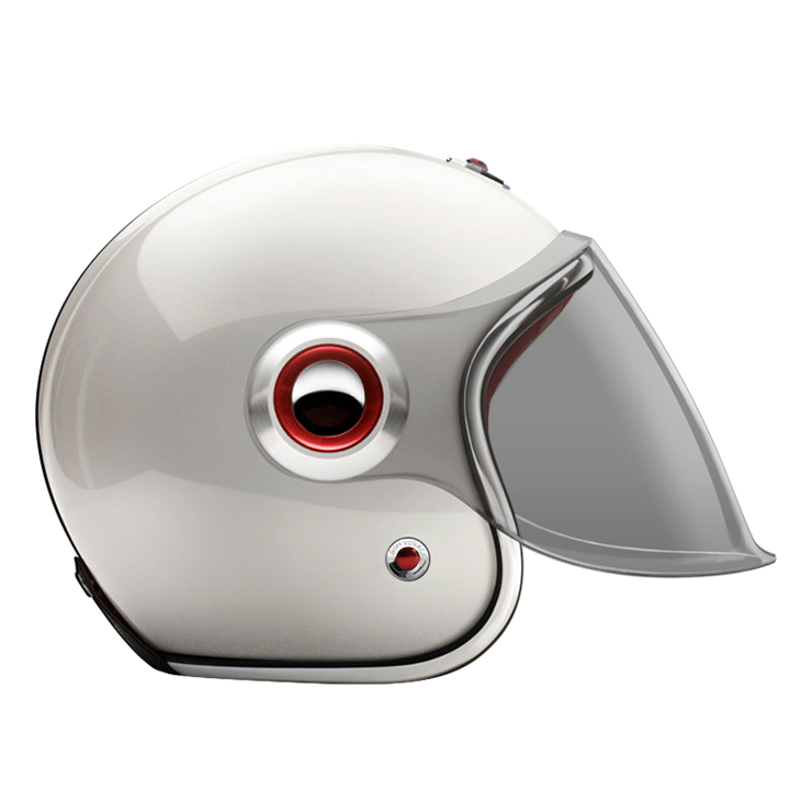 The Jet Helmet is equipped with an articulated screen/visor that can cover the complete face, it lets you ride with comfort in any weather condition. The Jet Helmet appears as rather retro-futuristic, reminding of robots and fiction heroes of the 1960s. Every Jet Helmet comes with three visors, a clear, a light smoke and a dark smoke, that are exchangeable within seconds, thanks to the quick release fastening pivots on the sides of the helmet. Of course, the Jet Helmet meets the same safety and quality demands as the Open Face Helmet. By the way, you can change the pivots on the sides, too. Go to accessories to see all of them.