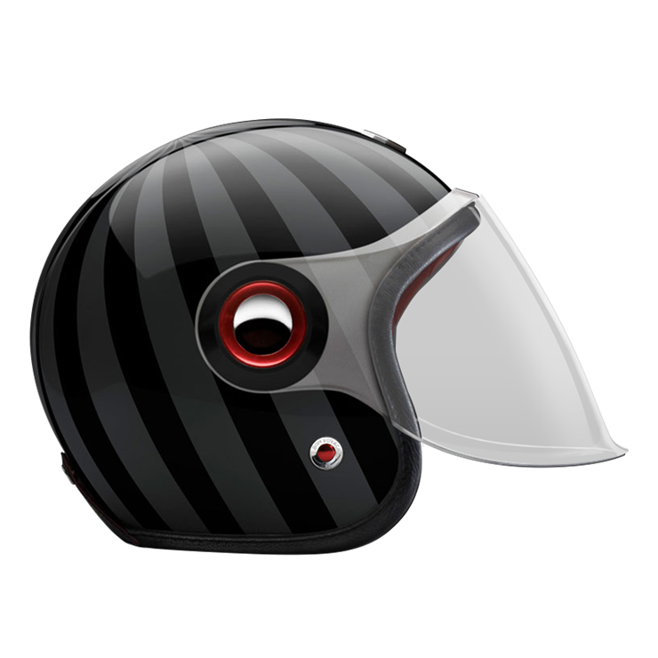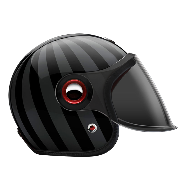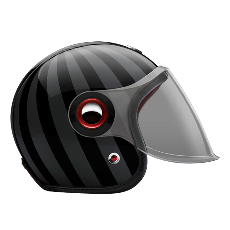 The large, integrated screen gives the helmet a subtle retro-futuristic character, echoing 1960s robots and science-fiction heroes, while remaining compact on the head. Each helmet combines a vintage-inspired silhouette with modern materials and current safety standards.