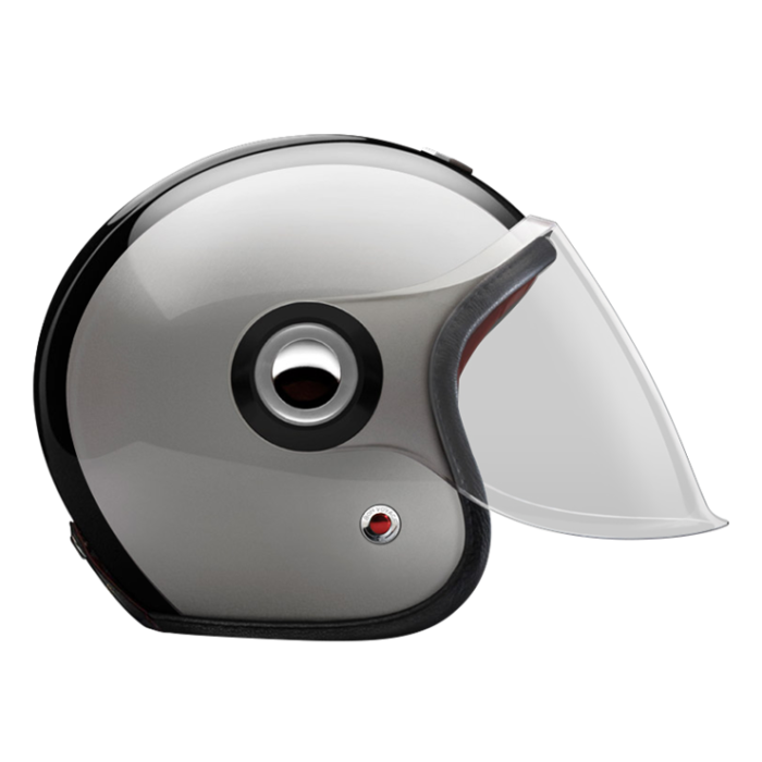 The large, integrated screen gives the helmet a subtle retro-futuristic character, echoing 1960s robots and science-fiction heroes, while remaining compact on the head. Each helmet combines a vintage-inspired silhouette with modern materials and current safety standards.