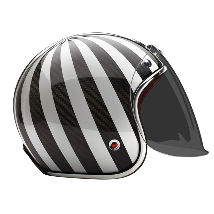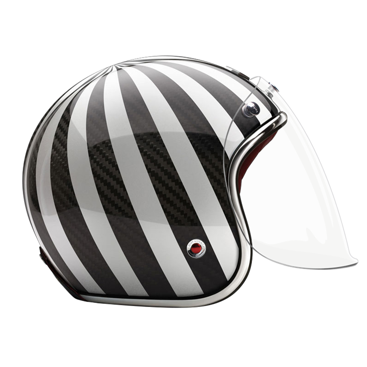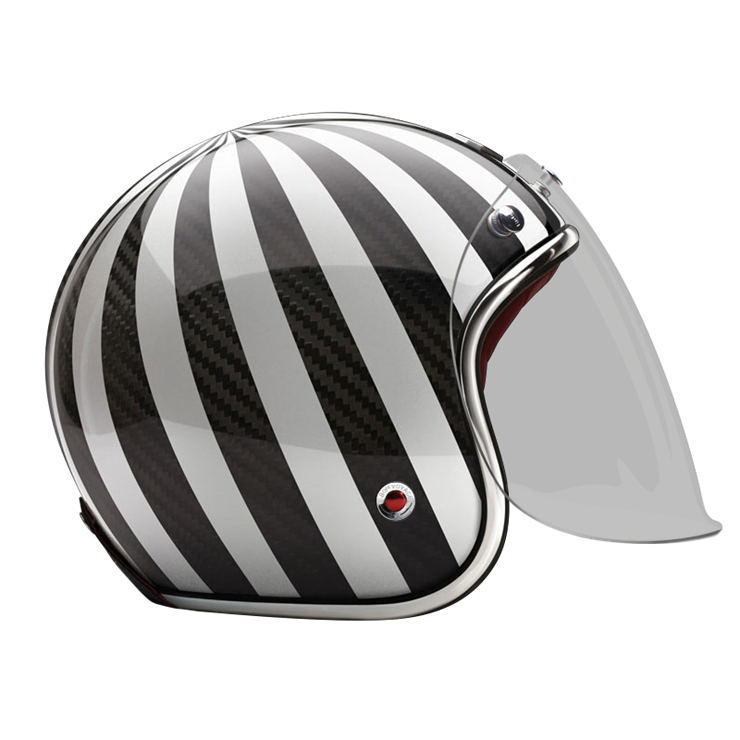 The craftsmanship of our Open face helmet represents the pinnacle of style and expertise by Les Ateliers Ruby. Despite its twinge of retro style and simplicity, it shows a modern design and meets the highest demands in regards to safety and quality of the manufactured materials. For the open face helmet, there are visors in three different shadings available, clear, light smoke and dark smoke. They can be attached to the metal snaps on the helmet and allow you to ride comfortably with higher speeds, too.