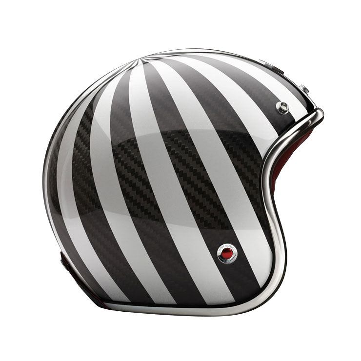 - Chrome, black leather or rubber trim, that reminds of old luxury cars, outlines the helmet