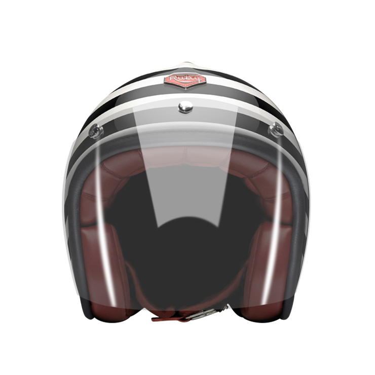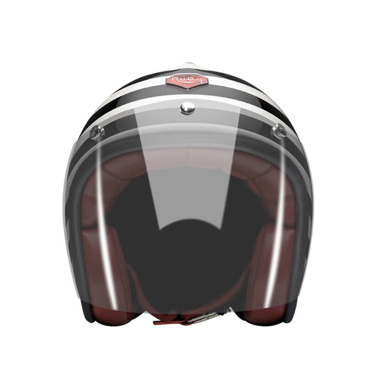 The craftsmanship of our Open face helmet represents the pinnacle of style and expertise by Les Ateliers Ruby. Despite its twinge of retro style and simplicity, it shows a modern design and meets the highest demands in regards to safety and quality of the manufactured materials. For the open face helmet, there are visors in three different shadings available, clear, light smoke and dark smoke. They can be attached to the metal snaps on the helmet and allow you to ride comfortably with higher speeds, too.