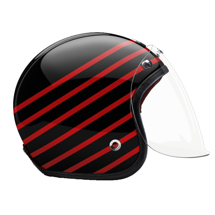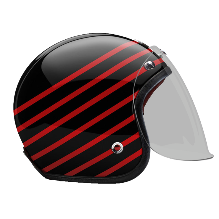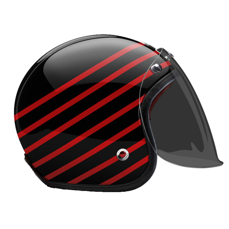 The craftsmanship of our Open face helmet represents the pinnacle of style and expertise by Les Ateliers Ruby. Despite its twinge of retro style and simplicity, it shows a modern design and meets the highest demands in regards to safety and quality of the manufactured materials. For the open face helmet, there are visors in three different shadings available, clear, light smoke and dark smoke. They can be attached to the metal snaps on the helmet and allow you to ride comfortably with higher speeds, too.
