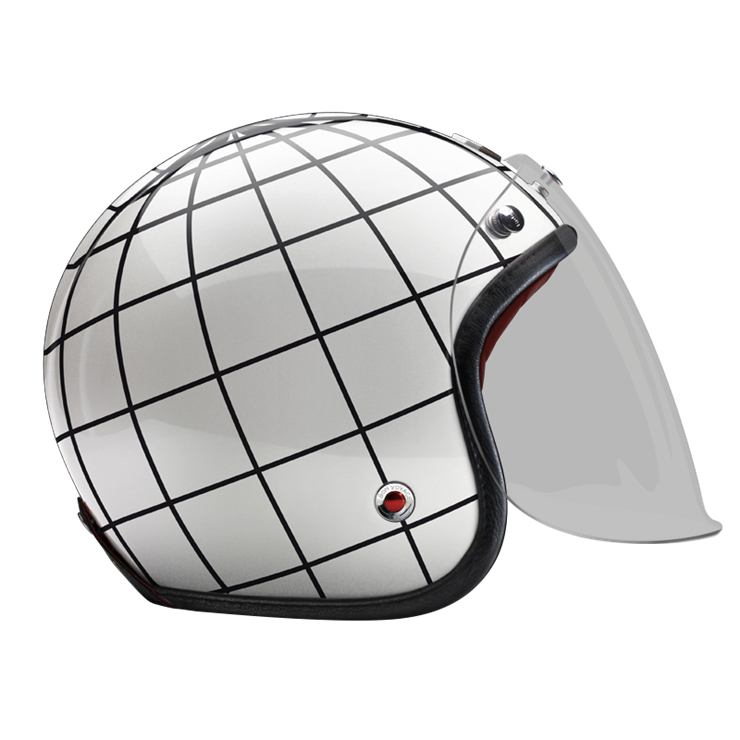 The craftsmanship of our Open face helmet represents the pinnacle of style and expertise by Les Ateliers Ruby. Despite its twinge of retro style and simplicity, it shows a modern design and meets the highest demands in regards to safety and quality of the manufactured materials. For the open face helmet, there are visors in three different shadings available, clear, light smoke and dark smoke. They can be attached to the metal snaps on the helmet and allow you to ride comfortably with higher speeds, too.