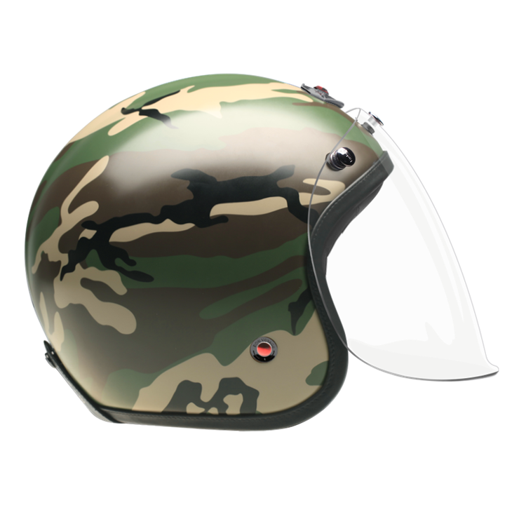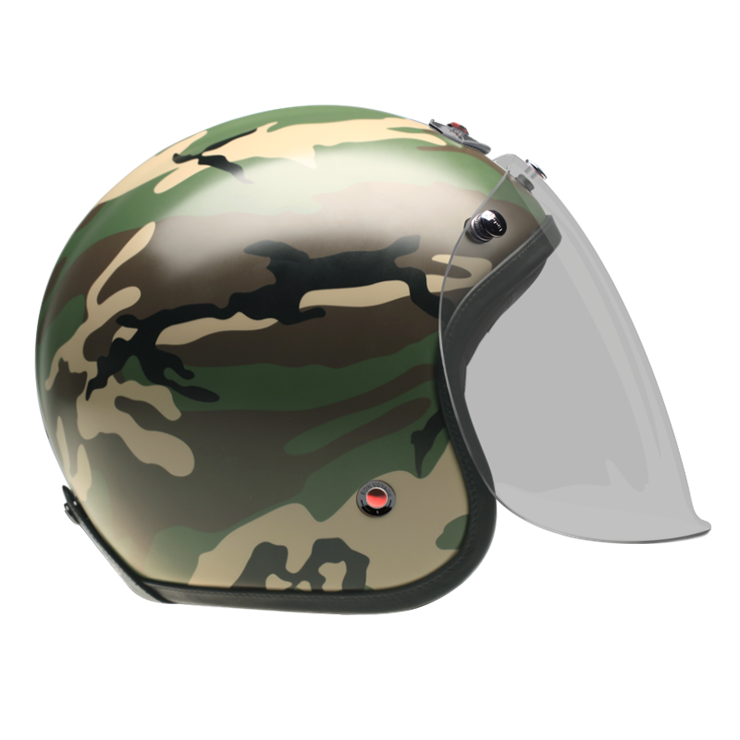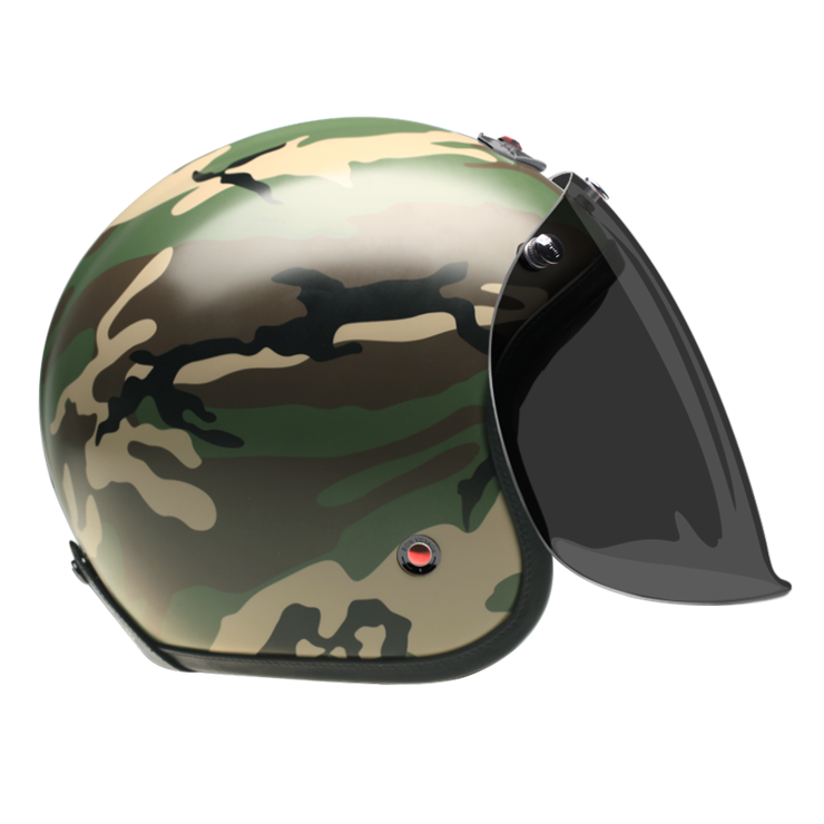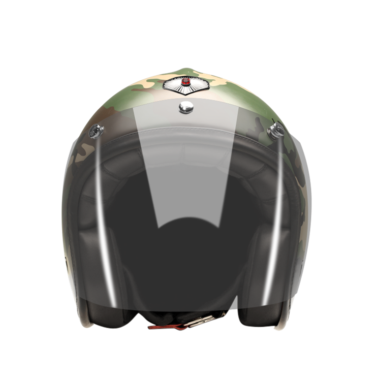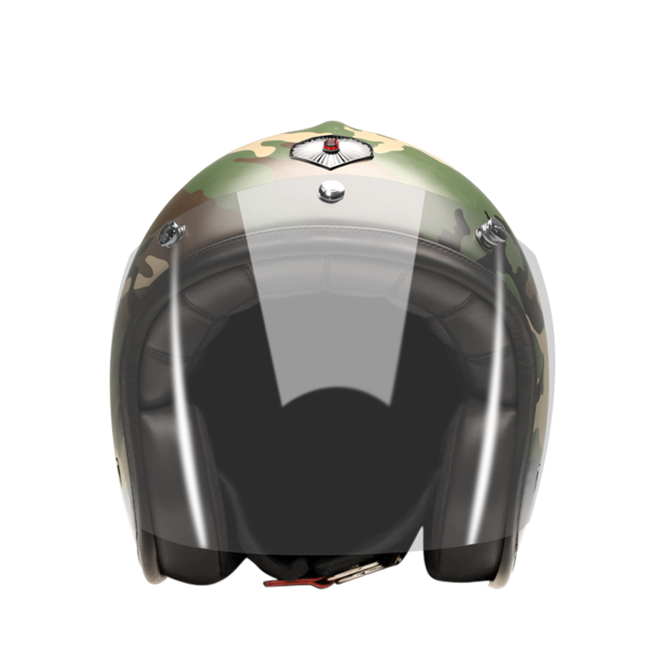 The craftsmanship of our Open face helmet represents the pinnacle of style and expertise by Les Ateliers Ruby. Despite its twinge of retro style and simplicity, it shows a modern design and meets the highest demands in regards to safety and quality of the manufactured materials. For the open face helmet, there are visors in three different shadings available, clear, light smoke and dark smoke. They can be attached to the metal snaps on the helmet and allow you to ride comfortably with higher speeds, too.
