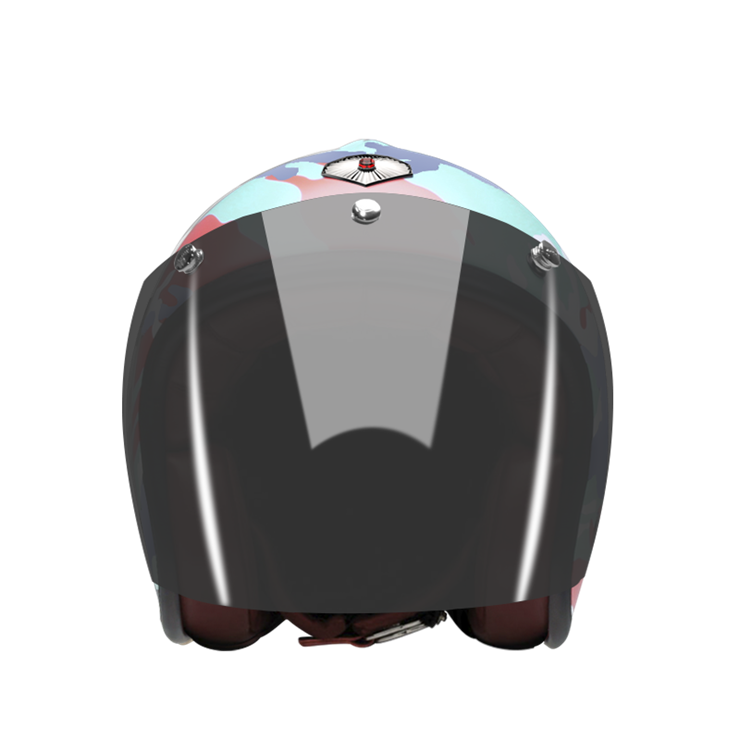 The craftsmanship of our Open face helmet represents the pinnacle of style and expertise by Les Ateliers Ruby. Despite its twinge of retro style and simplicity, it shows a modern design and meets the highest demands in regards to safety and quality of the manufactured materials. For the open face helmet, there are visors in three different shadings available, clear, light smoke and dark smoke. They can be attached to the metal snaps on the helmet and allow you to ride comfortably with higher speeds, too.