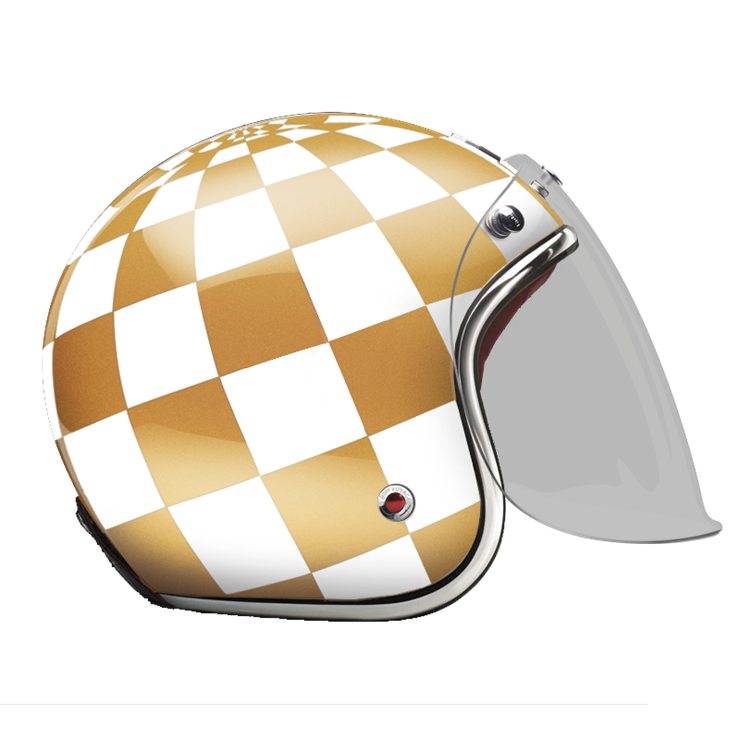 The craftsmanship of our Open face helmet represents the pinnacle of style and expertise by Les Ateliers Ruby. Despite its twinge of retro style and simplicity, it shows a modern design and meets the highest demands in regards to safety and quality of the manufactured materials. For the open face helmet, there are visors in three different shadings available, clear, light smoke and dark smoke. They can be attached to the metal snaps on the helmet and allow you to ride comfortably with higher speeds, too.