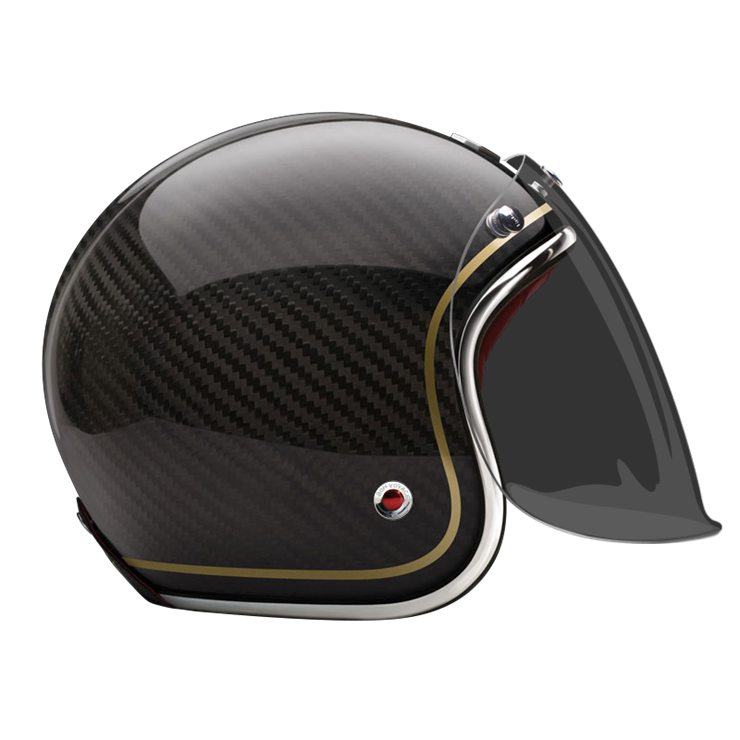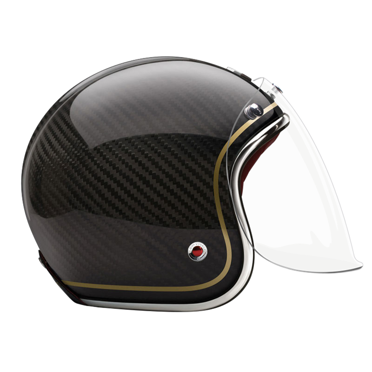 The craftsmanship of our Open face helmet represents the pinnacle of style and expertise by Les Ateliers Ruby. Despite its twinge of retro style and simplicity, it shows a modern design and meets the highest demands in regards to safety and quality of the manufactured materials. For the open face helmet, there are visors in three different shadings available, clear, light smoke and dark smoke. They can be attached to the metal snaps on the helmet and allow you to ride comfortably with higher speeds, too.