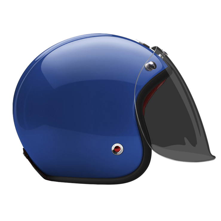 The craftsmanship of our Open face helmet represents the pinnacle of style and expertise by Les Ateliers Ruby. Despite its twinge of retro style and simplicity, it shows a modern design and meets the highest demands in regards to safety and quality of the manufactured materials. For the open face helmet, there are visors in three different shadings available, clear, light smoke and dark smoke. They can be attached to the metal snaps on the helmet and allow you to ride comfortably with higher speeds, too.