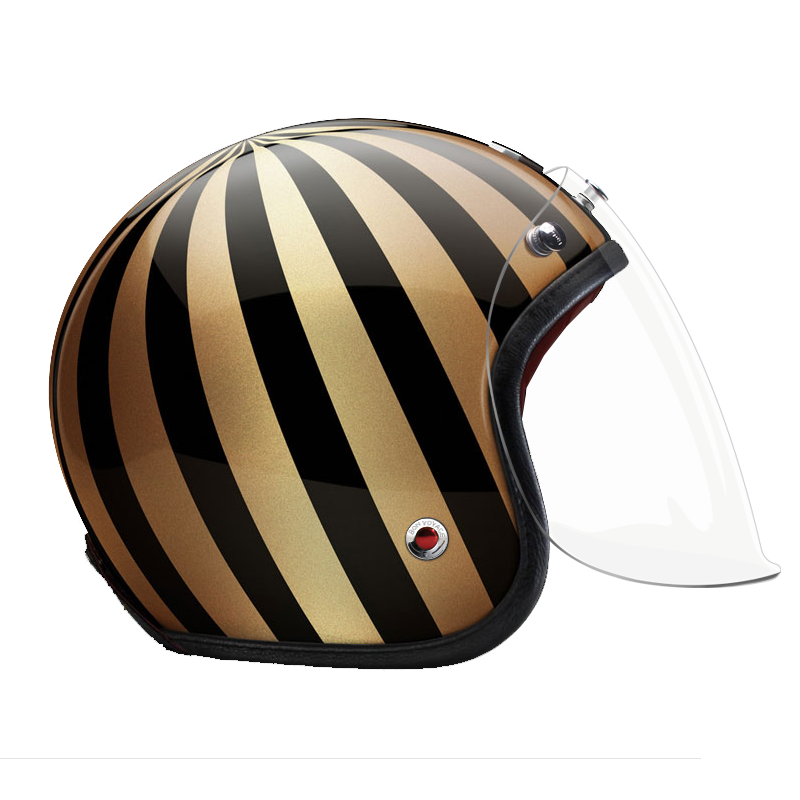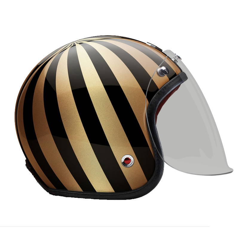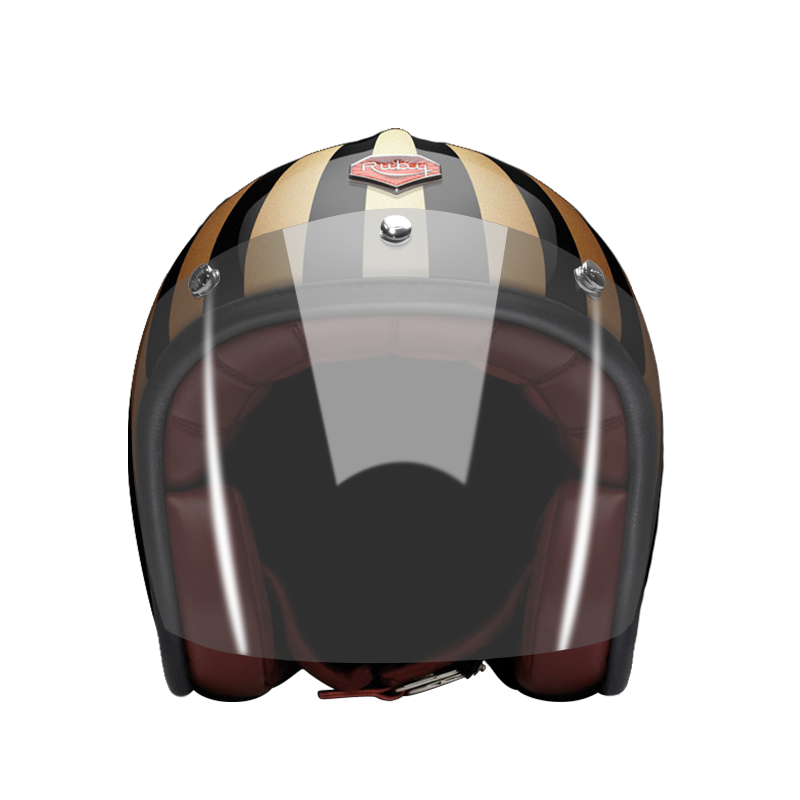 The craftsmanship of our Open face helmet represents the pinnacle of style and expertise by Les Ateliers Ruby. Despite its twinge of retro style and simplicity, it shows a modern design and meets the highest demands in regards to safety and quality of the manufactured materials. For the open face helmet, there are visors in three different shadings available, clear, light smoke and dark smoke. They can be attached to the metal snaps on the helmet and allow you to ride comfortably with higher speeds, too.