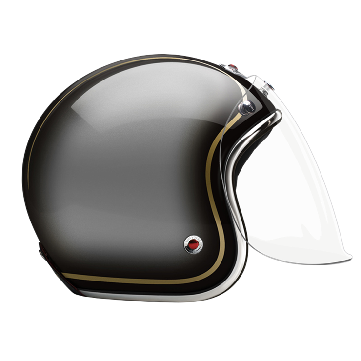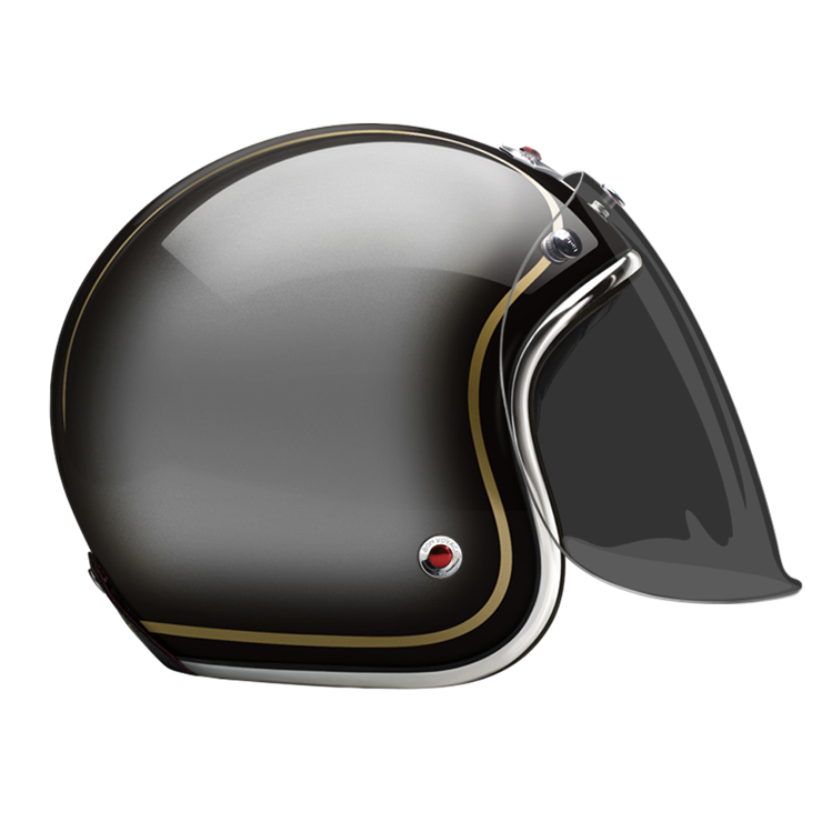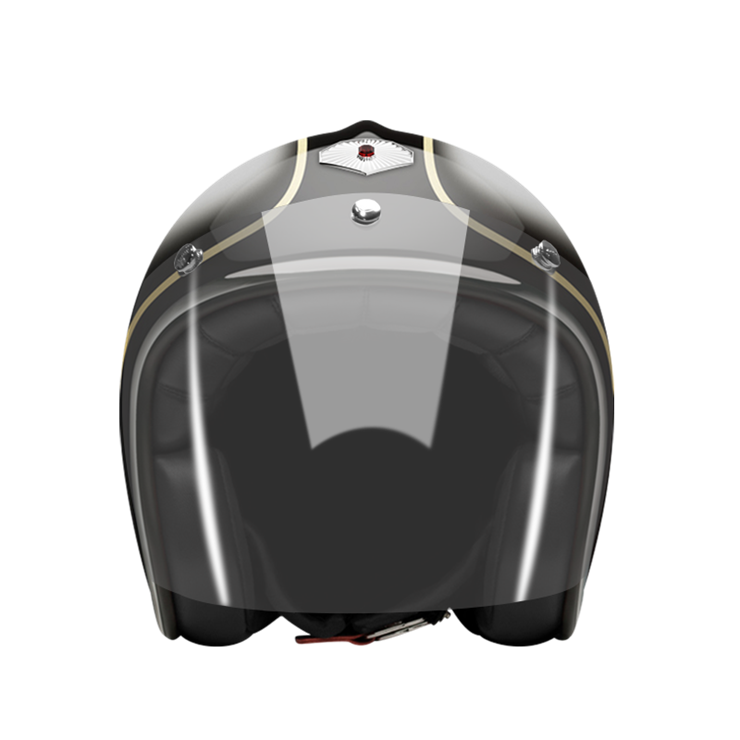 The craftsmanship of our Open face helmet represents the pinnacle of style and expertise by Les Ateliers Ruby. Despite its twinge of retro style and simplicity, it shows a modern design and meets the highest demands in regards to safety and quality of the manufactured materials. For the open face helmet, there are visors in three different shadings available, clear, light smoke and dark smoke. They can be attached to the metal snaps on the helmet and allow you to ride comfortably with higher speeds, too.