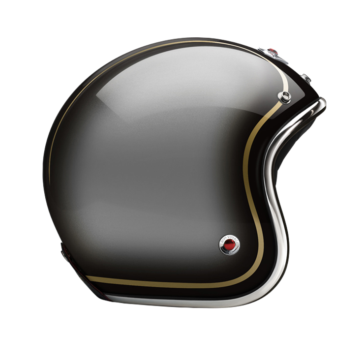 - Chrome, black leather or rubber trim, that reminds of old luxury cars, outlines the helmet