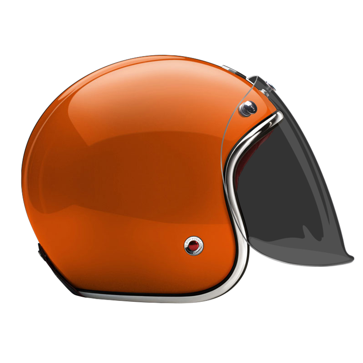 The craftsmanship of our Open face helmet represents the pinnacle of style and expertise by Les Ateliers Ruby. Despite its twinge of retro style and simplicity, it shows a modern design and meets the highest demands in regards to safety and quality of the manufactured materials. For the open face helmet, there are visors in three different shadings available, clear, light smoke and dark smoke. They can be attached to the metal snaps on the helmet and allow you to ride comfortably with higher speeds, too.