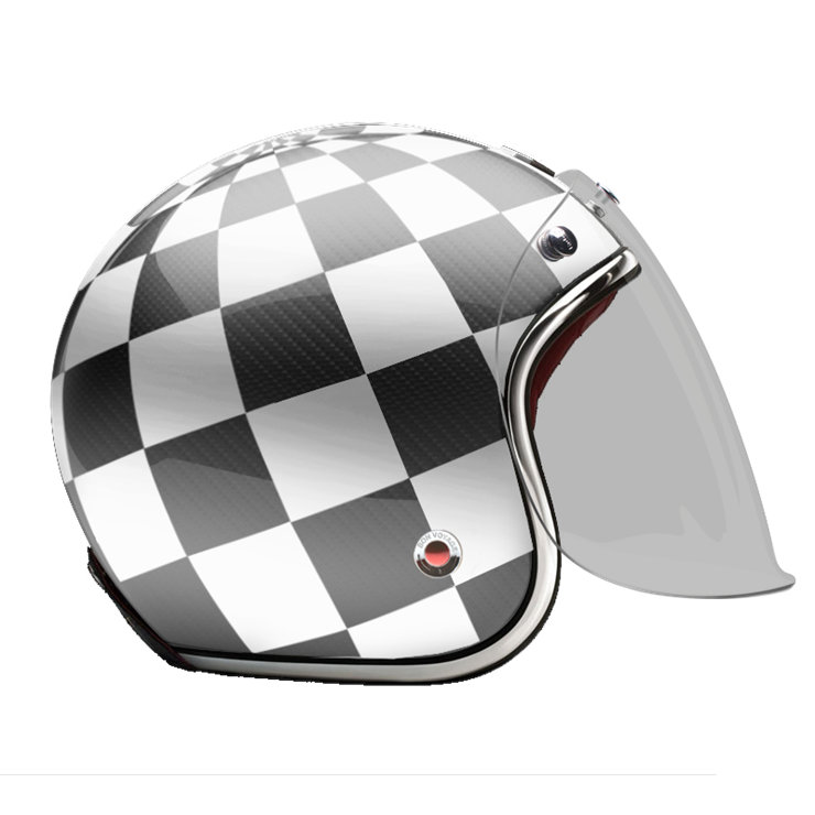 The craftsmanship of our Open face helmet represents the pinnacle of style and expertise by Les Ateliers Ruby. Despite its twinge of retro style and simplicity, it shows a modern design and meets the highest demands in regards to safety and quality of the manufactured materials. For the open face helmet, there are visors in three different shadings available, clear, light smoke and dark smoke. They can be attached to the metal snaps on the helmet and allow you to ride comfortably with higher speeds, too.