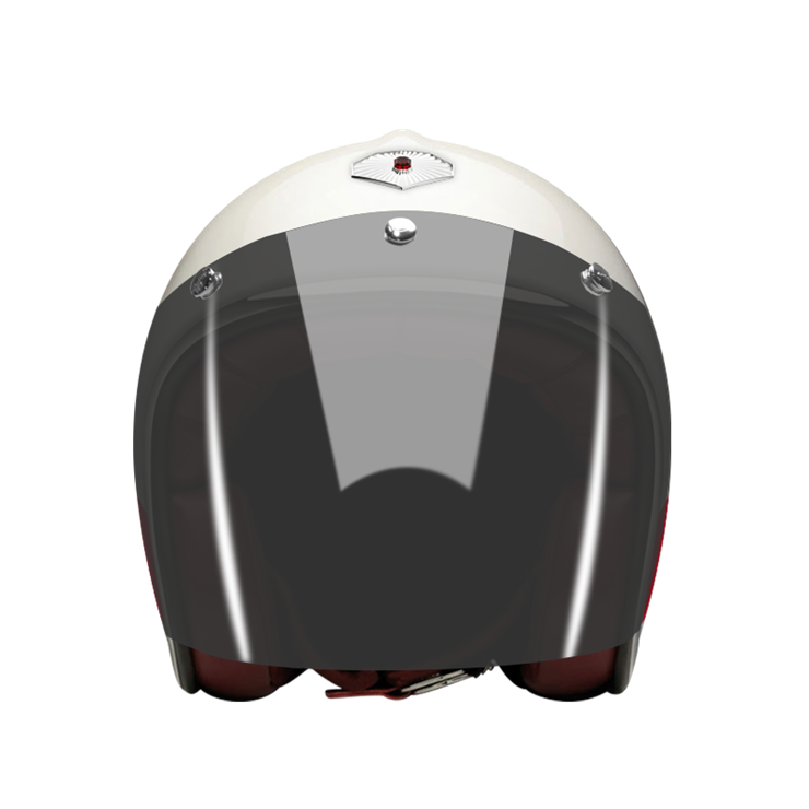The craftsmanship of our Open face helmet represents the pinnacle of style and expertise by Les Ateliers Ruby. Despite its twinge of retro style and simplicity, it shows a modern design and meets the highest demands in regards to safety and quality of the manufactured materials. For the open face helmet, there are visors in three different shadings available, clear, light smoke and dark smoke. They can be attached to the metal snaps on the helmet and allow you to ride comfortably with higher speeds, too.