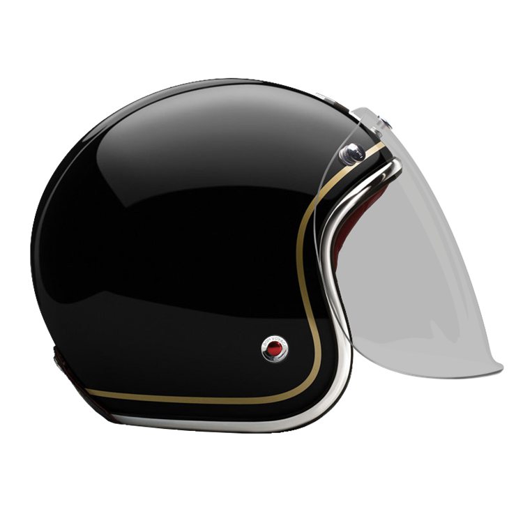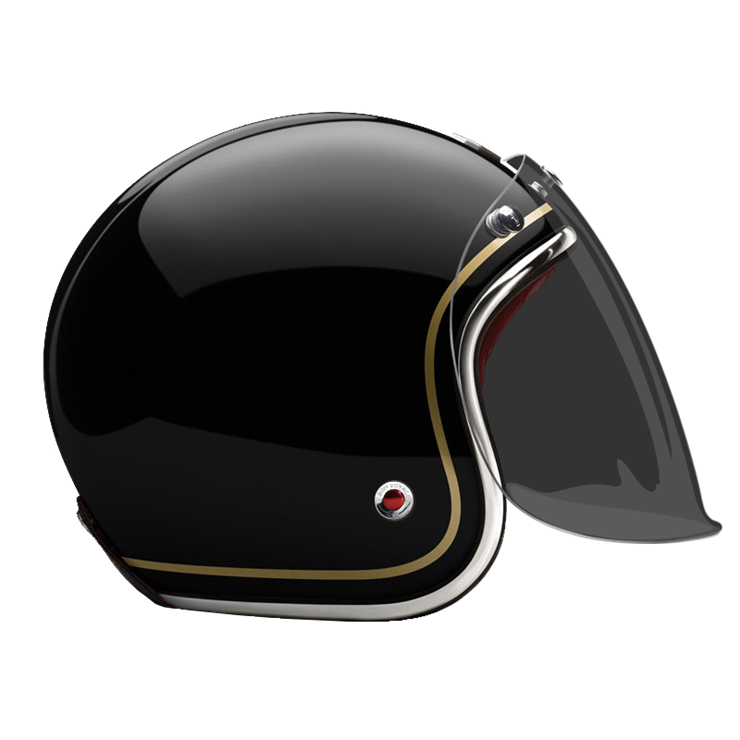 The craftsmanship of our Open face helmet represents the pinnacle of style and expertise by Les Ateliers Ruby. Despite its twinge of retro style and simplicity, it shows a modern design and meets the highest demands in regards to safety and quality of the manufactured materials. For the open face helmet, there are visors in three different shadings available, clear, light smoke and dark smoke. They can be attached to the metal snaps on the helmet and allow you to ride comfortably with higher speeds, too.