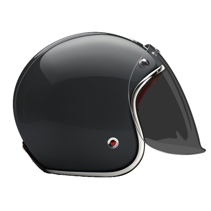 The craftsmanship of our Open face helmet represents the pinnacle of style and expertise by Les Ateliers Ruby. Despite its twinge of retro style and simplicity, it shows a modern design and meets the highest demands in regards to safety and quality of the manufactured materials. For the open face helmet, there are visors in three different shadings available, clear, light smoke and dark smoke. They can be attached to the metal snaps on the helmet and allow you to ride comfortably with higher speeds, too.